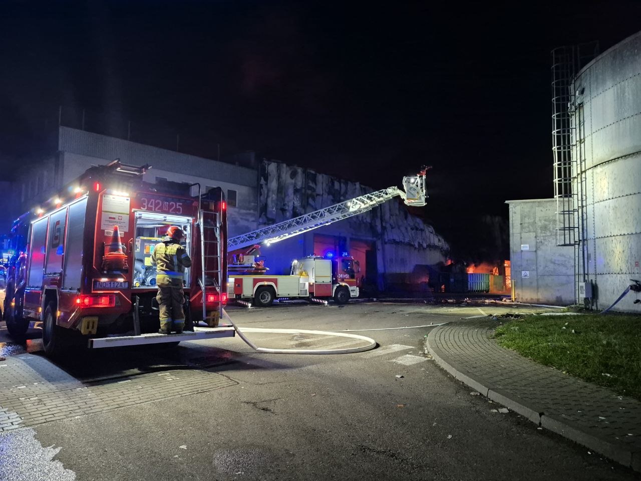Na miejscu pracuje 11 zastępów straży pożarnej, które starają się opanować sytuację. Kolejnych 6 zastępów jest w drodze. Teren zabezpiecza policja.