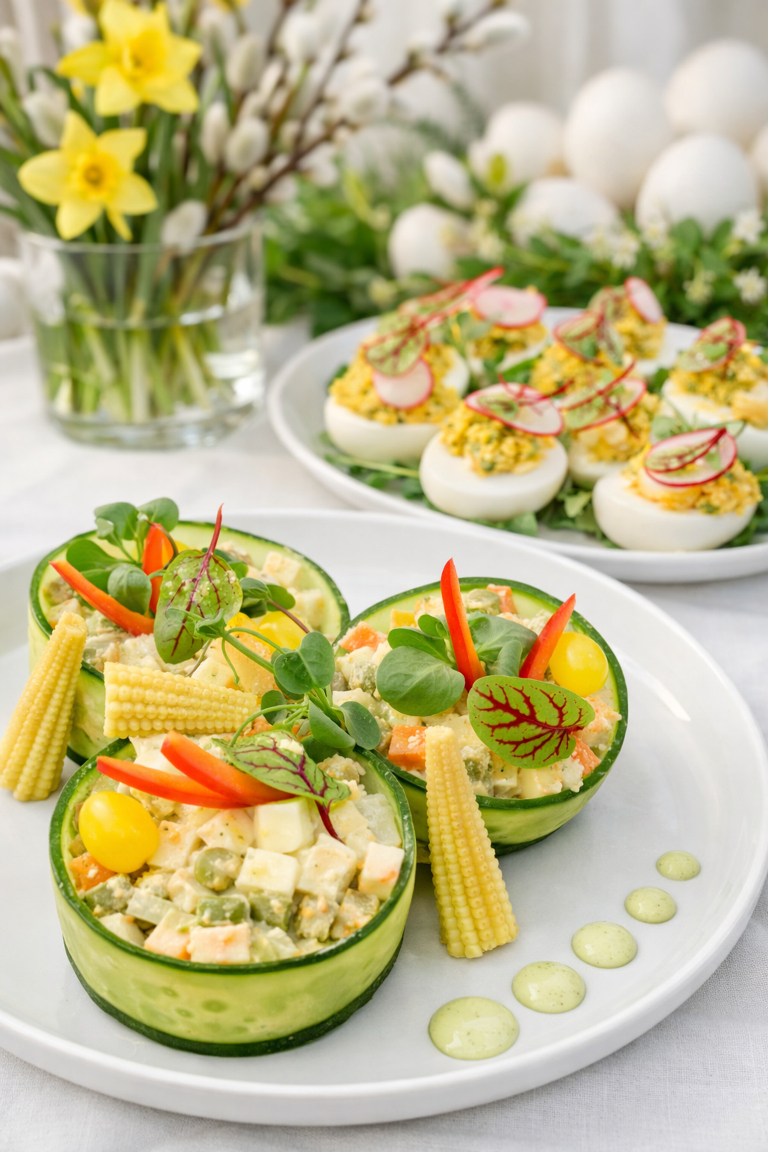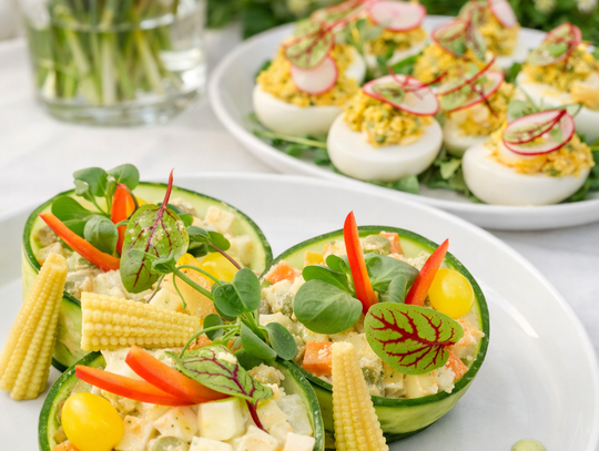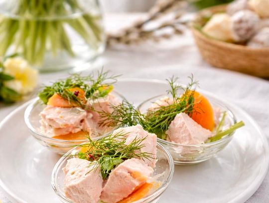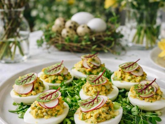 Na świątecznym stole doskonale sprawdzą się także jajka faszerowane pieczarkami i szczypiorkiem, przygotowywane według receptury kuchni Nowej Holandii – delikatne, kremowe i idealne jako wielkanocna przystawka. Miłośnicy ryb z pewnością docenią również łososia w zalewie winno-octowej, którego smak jest lekko wytrawny, świeży i doskonale wpisuje się w wielkanocne tradycje.